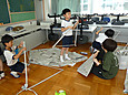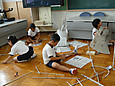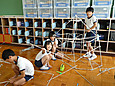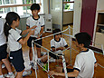 4年生図工「つなぐんぐん」では、新聞紙を棒状に丸めたものをどんどんつないでいます。家のような立体物ができてきました。